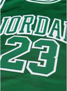 Camiseta Jordan. Modelo Michael Jordan 23. Cor verde. Sem mangas. Gola redonda. Inspirada na que Michael Jordan usou. Feita com um tecido de malha transparente respirável. Detalhes de remendos com aplicações. Ajuste confortável.