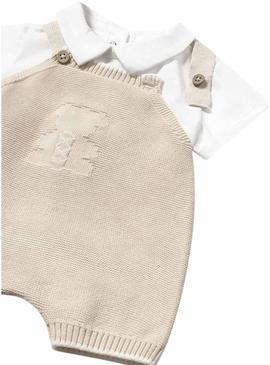 Conjunto Mayoral macacão e camiseta de linho para bebê.