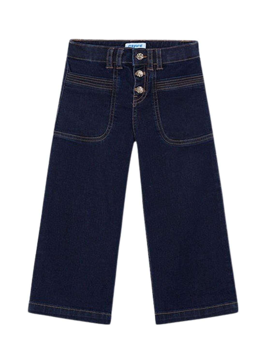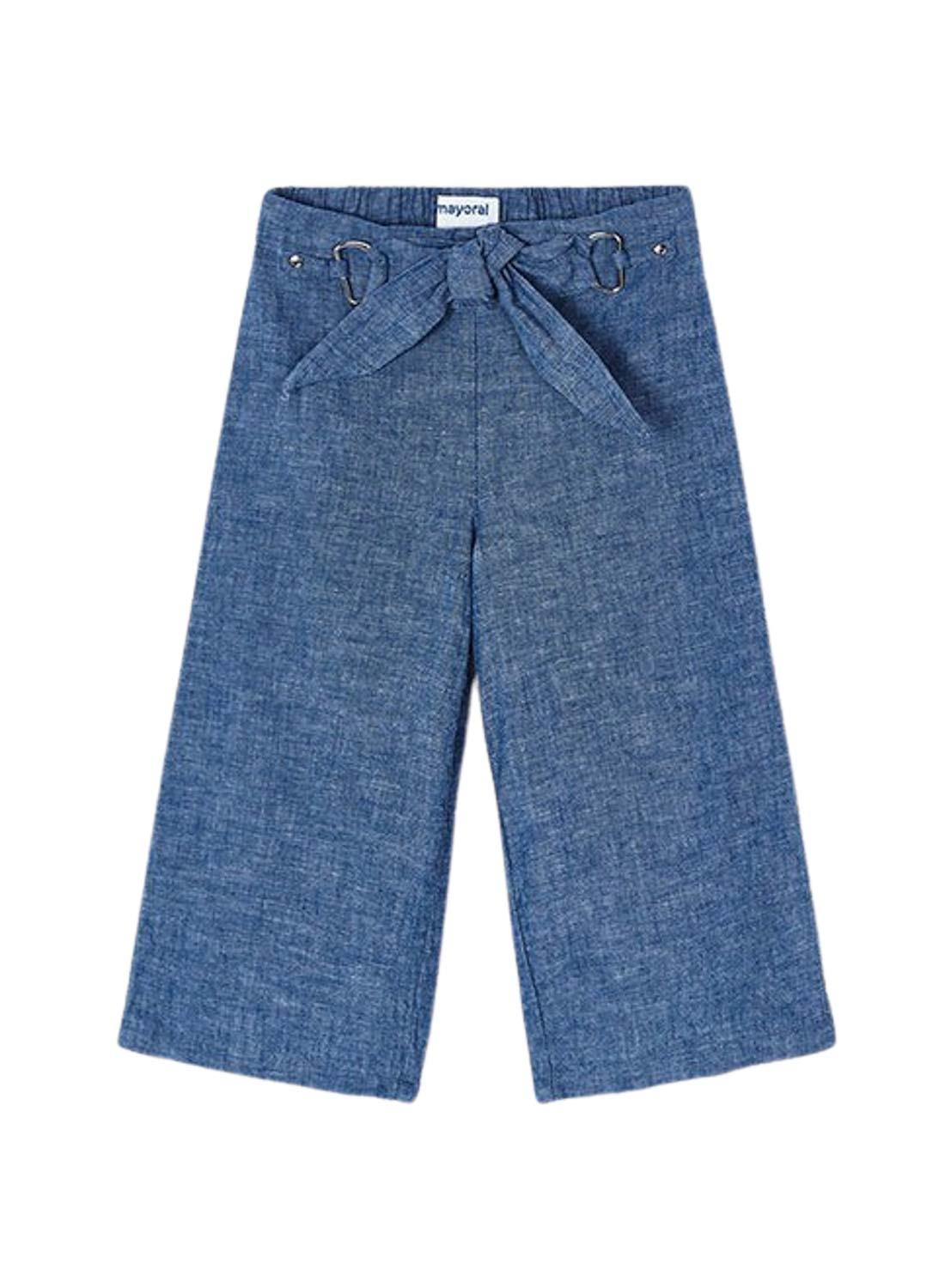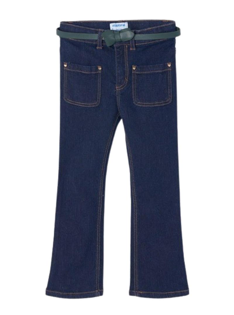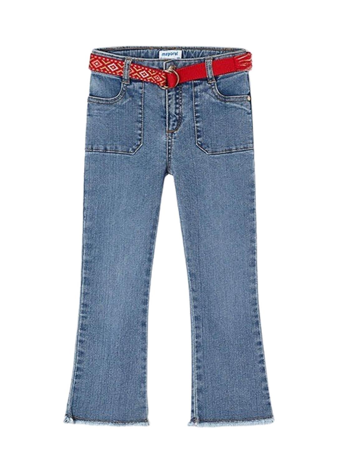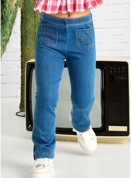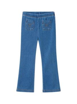 Calças justas Mayoral flare de malha denim azul para menina