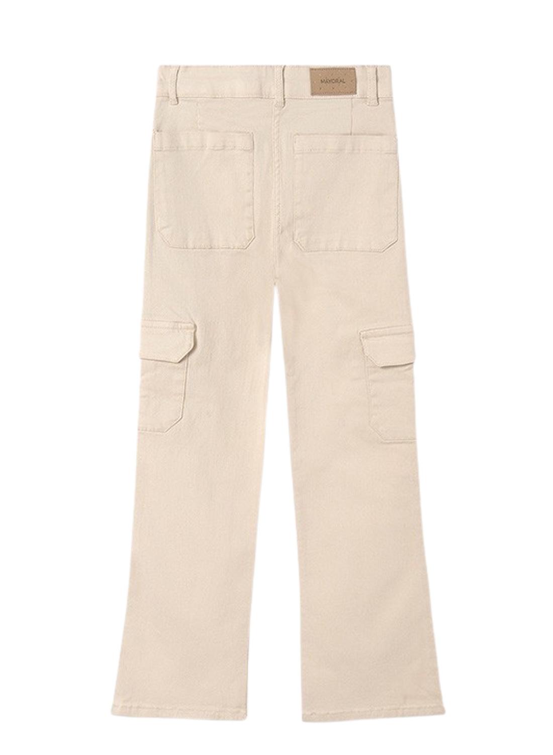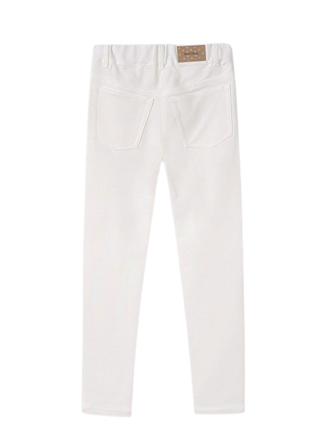 Calças Mayoral. Modelo flare knit. Cintura elástica com elástico. Dois bolsos. Corte reto. Tecido elástico.