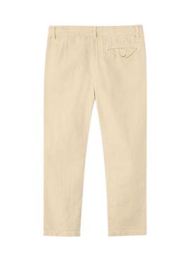Calças de linho Mayoral lavadas em bege para menino