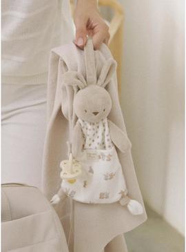 Peluche para recém-nascido Mayoral. Cor bege. Toque suave e felpudo. Inclui prendedor de chupeta.