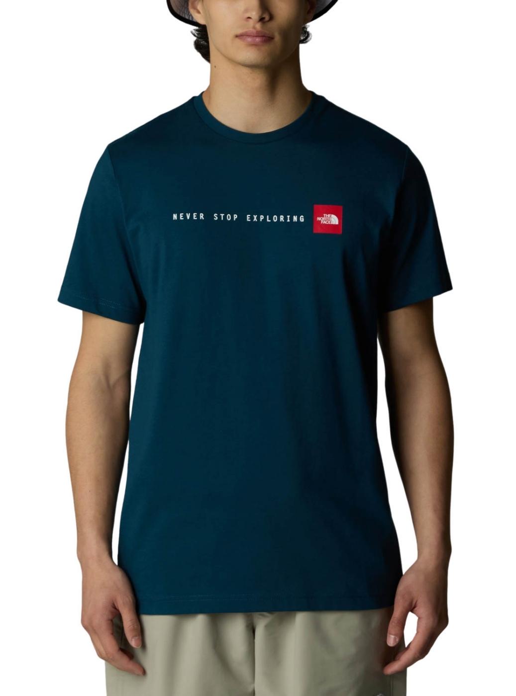 Camiseta The North Face. Modelo Reflective Box. Cor preta. Gola redonda. Manga curta. Corte regular. Gráfico da marca estampado no peito e nas costas. Acabamento refletivo.
