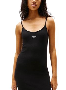 Vestido Tommy Jeans Script preto de alça para mulher