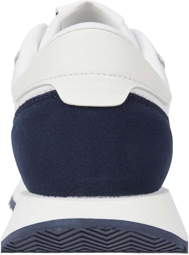Sapatilhas Tommy Jeans. Modelo Retro. Fecho com cordões. Logo lateral. Entressola de EVA. Sola de borracha. Cor branca. Painéis em azul marinho.