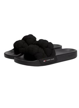 Sandálias Tommy Jeans trançadas pretas para mulher.