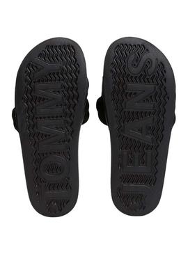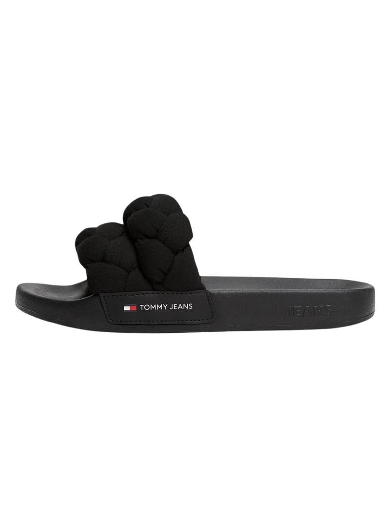 Chinelos Tommy Jeans. Modelo Trançado. Cor preta. Estilo slide. Parte superior com duas tiras trançadas. Sola de borracha. Palmilha anatômica. Logo lateral.