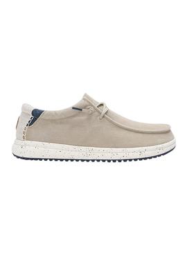 Sapatos Walkin Pitas. Modelo para crianças. Cor bege. Parte superior em lona de algodão respirável e resistente. Cadarços elásticos. Sola de EVA com solado de borracha antiderrapante. Palmilha interna removível e acolchoada.