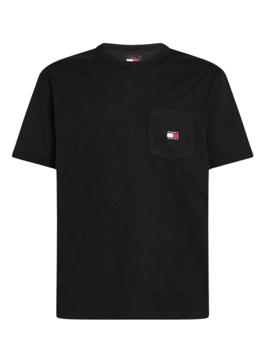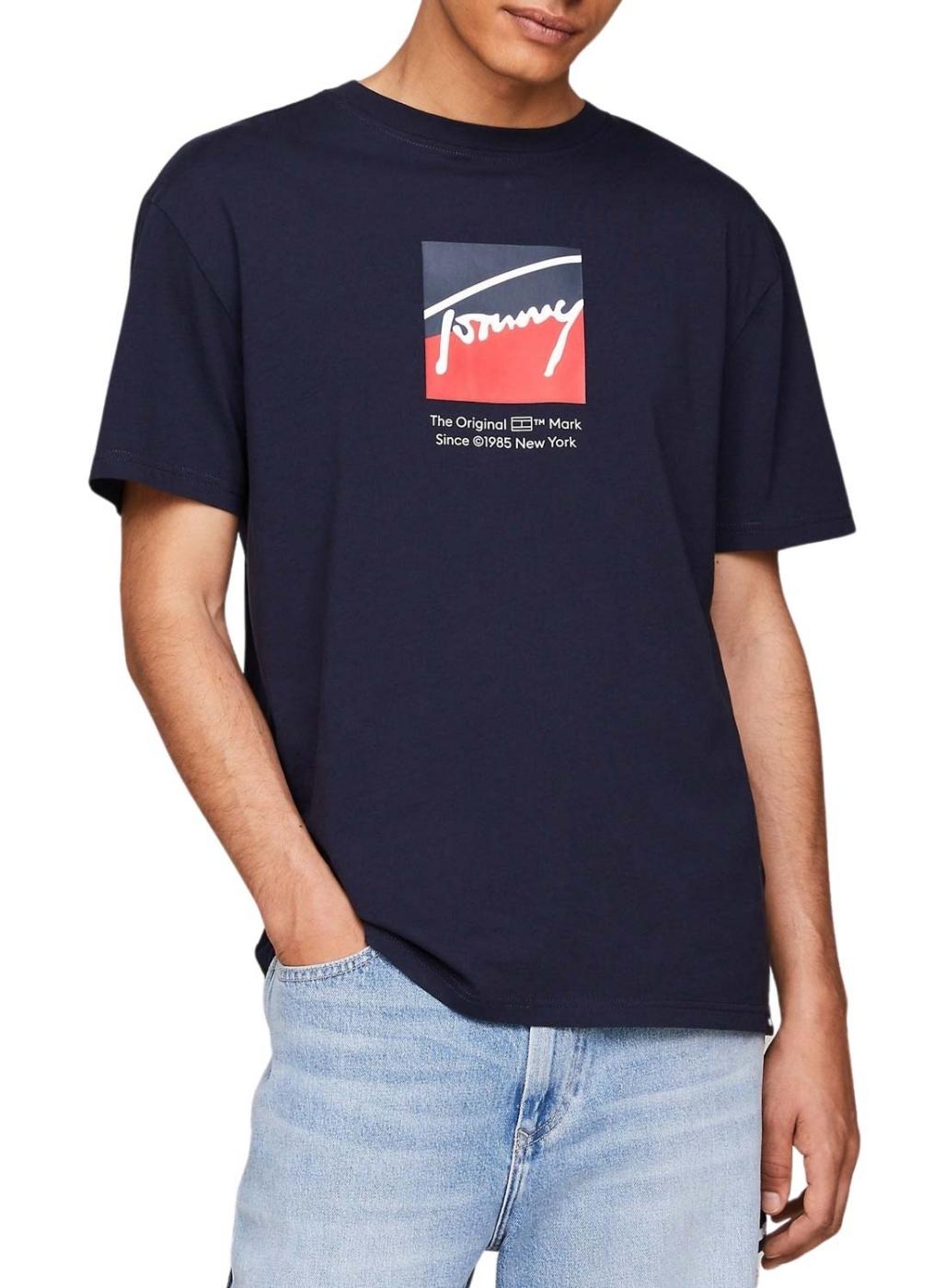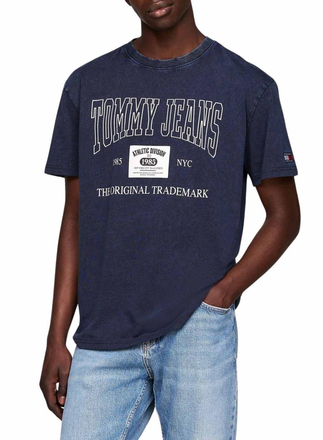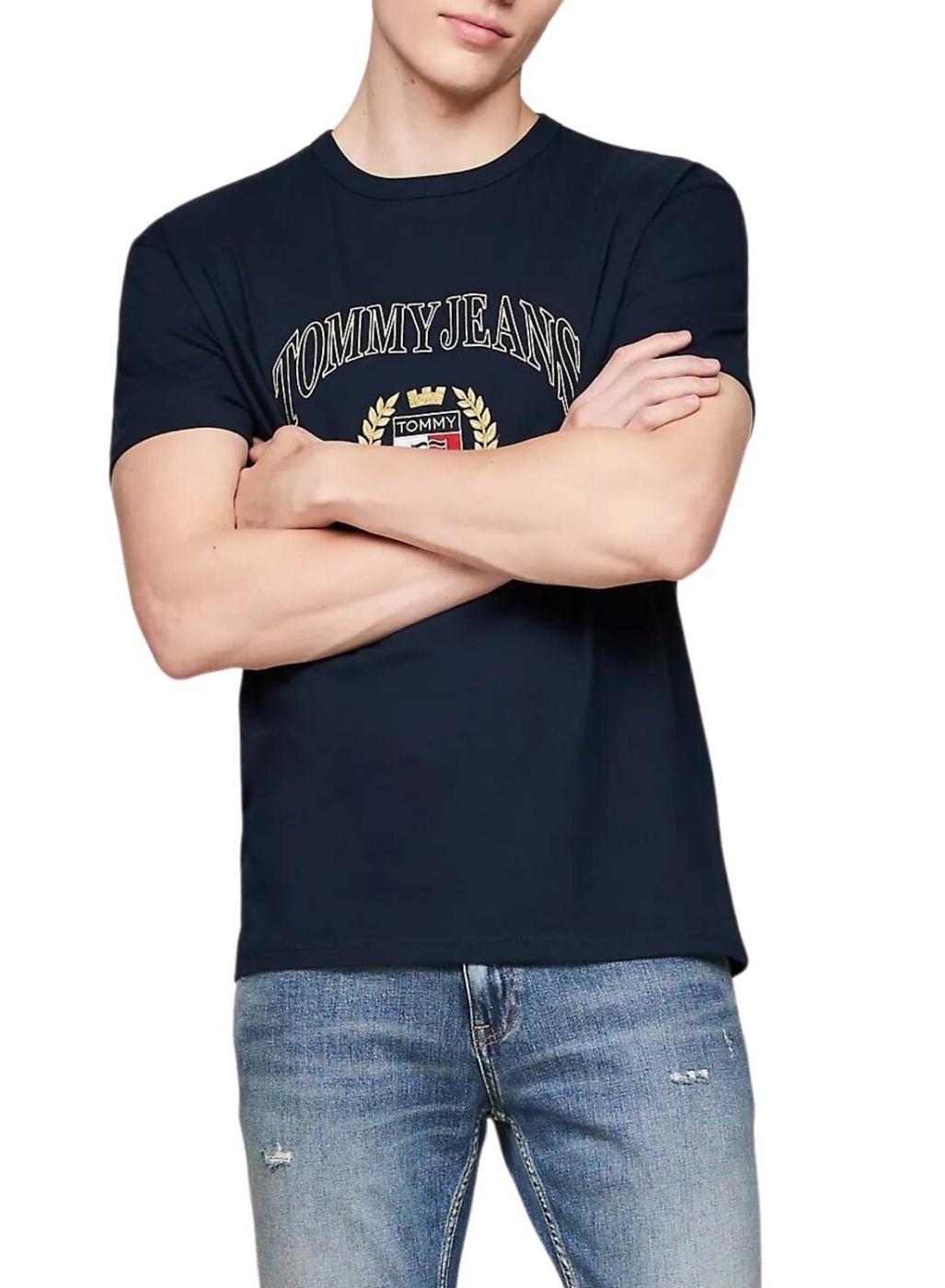 Camiseta Tommy Jeans Stripe azul e branco para homem.