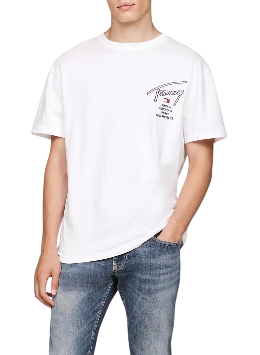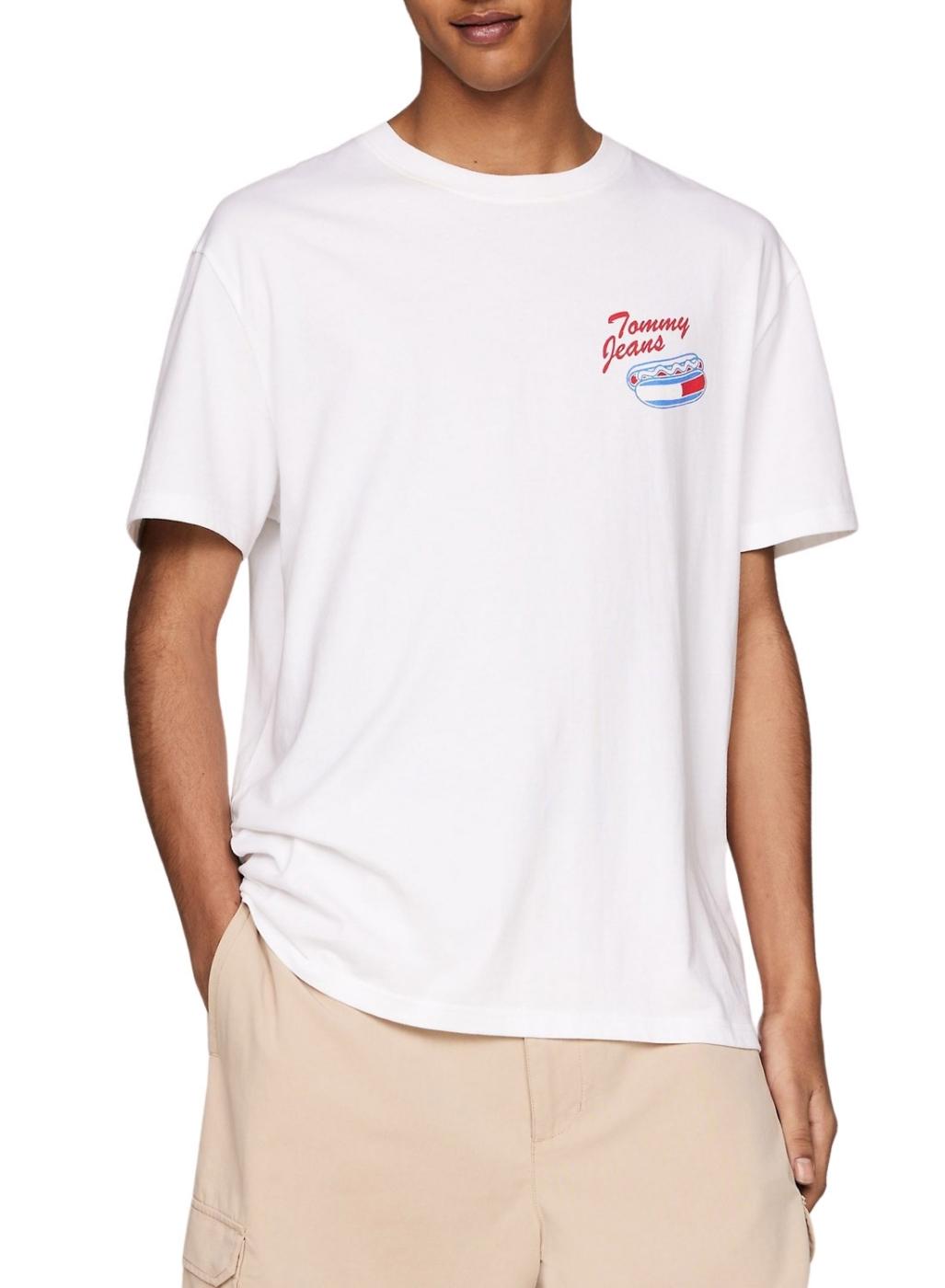 Camiseta Tommy Jeans Novelty branca estampada nas costas para homem