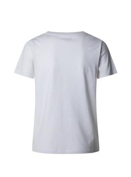 Camiseta Pepe Jeans. Modelo Val. Cor branca. Gola redonda. Manga curta. Logotipo estampado no peito em azul marinho. Efeito desgastado. Ajuste regular.
