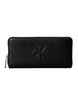 Carteira Calvin Klein Jeans Sculpted Zip preta para mulher.