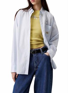 Camisa Calvin Klein Jeans Relaxed azul e branco para mulher.