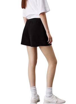 Shorts Calvin Klein Woven Label em preto canalé para mulher.