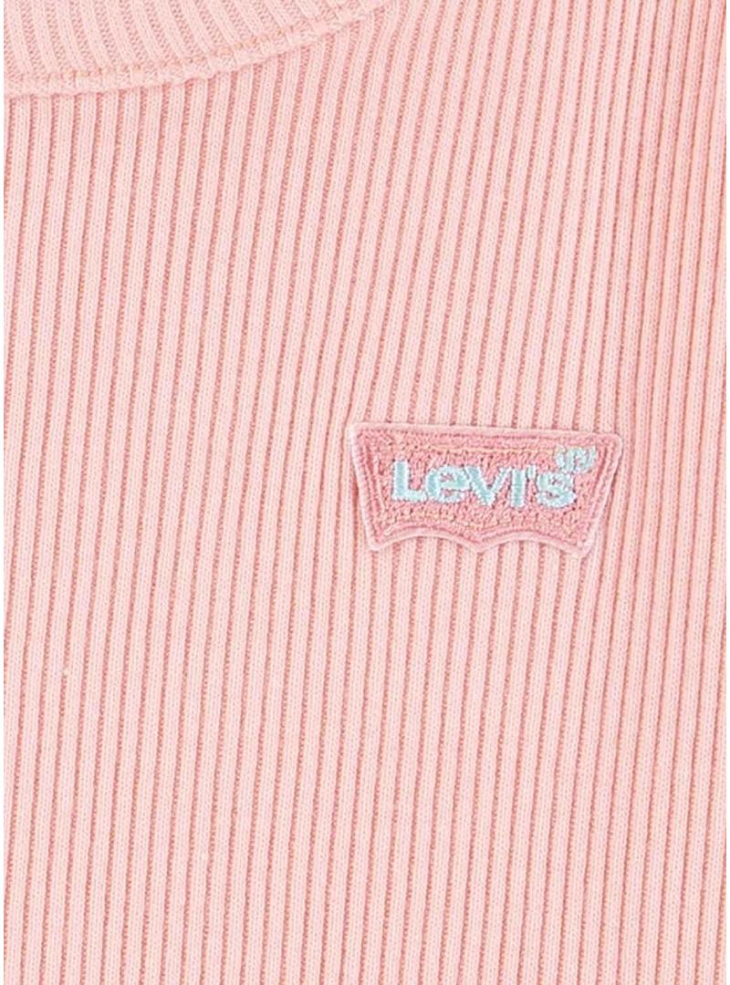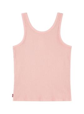 Camiseta Levis. Cor-de-rosa. Tecido de malha canelada. Sem mangas. Gola redonda. Logotipo da marca no peito.