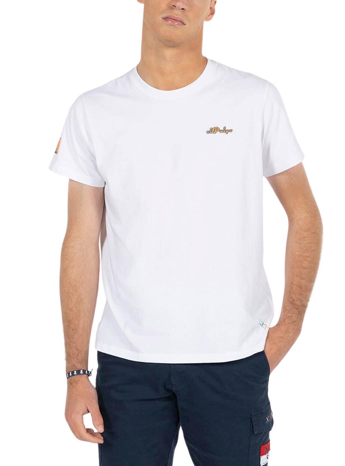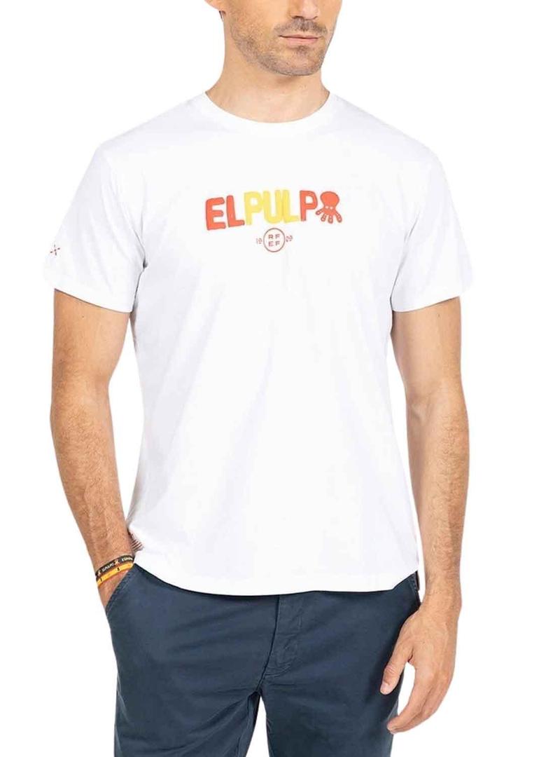 Camiseta El Pulpo básica bordada em marinho contrastante para homem.