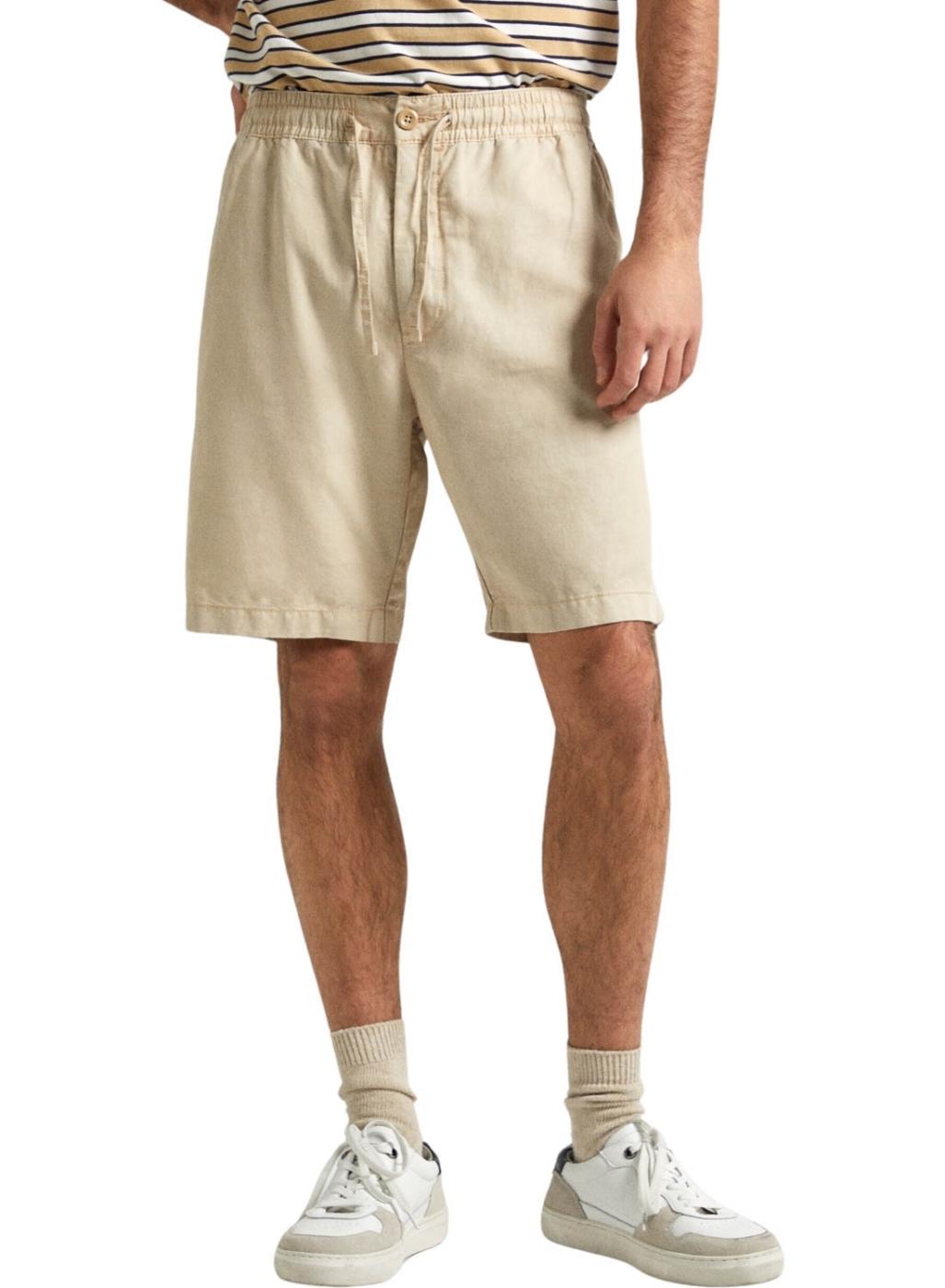 Bermuda Pepe Jeans. Modelo Smart. Corte relaxado. Cor verde. Tecido de linho de algodão. Fecho com cordão. Cintura elástica. Tingido em peça. Fecho com zíper e botão. Etiqueta com logo Pepe Jeans.