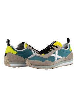 Sapatilhas Munich. Modelo UM 82. Corte baixo. Cor verde. Fecho com cordões. Biqueira redonda reforçada. Painéis em tecido de nylon e material sintético de alta qualidade. Palmilha removível e acolchoada. Sola de borracha resistente. Entressola leve com amortecimento ótimo.