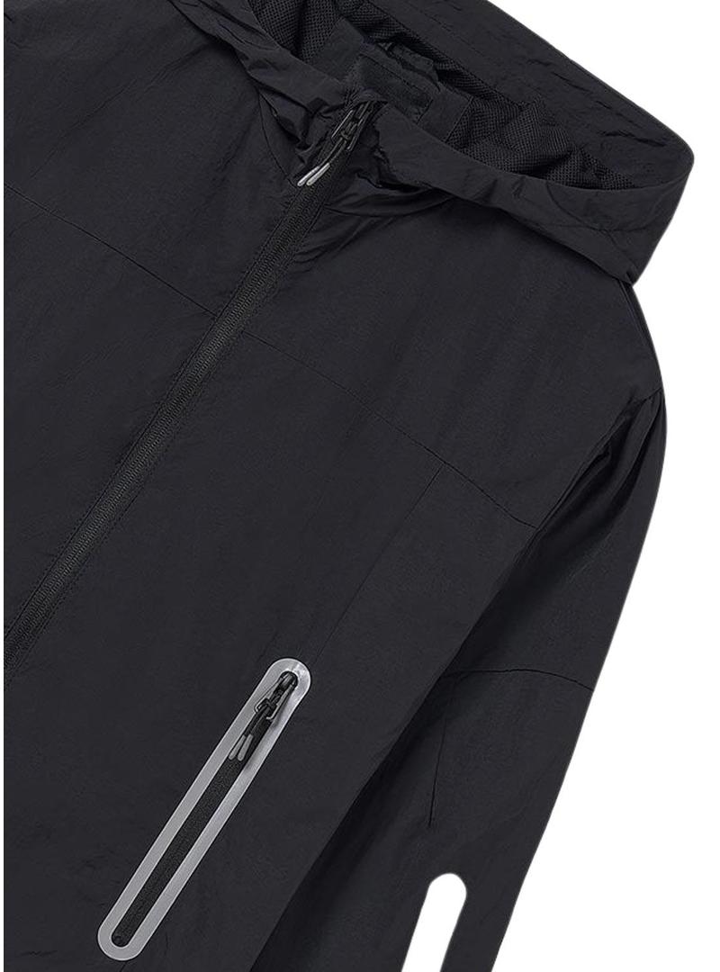 Windbreaker Mayoral. Modelo Athletics. Cor preta. Com capuz. Bolsos laterais. Ombros caídos. Punhos ajustáveis. Fecho principal com zíper.