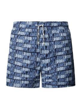 Fato de banho Pepe Jeans. Modelo com logotipo por todo. Estampado integral com logo Pepe Jeans. Cor azul marinho e azul. Cintura elástica.
