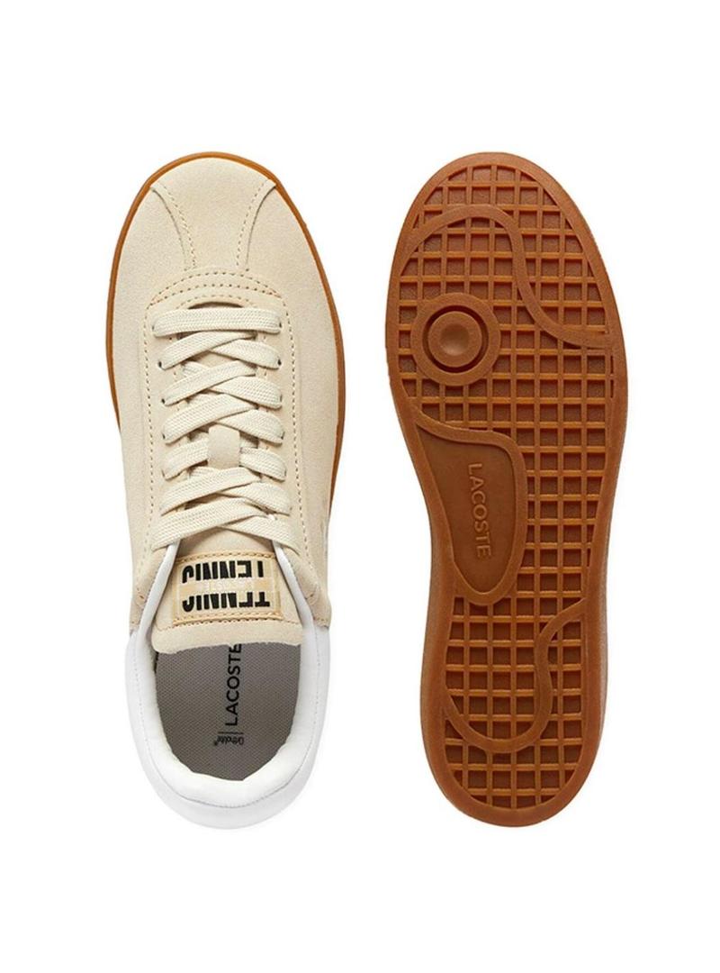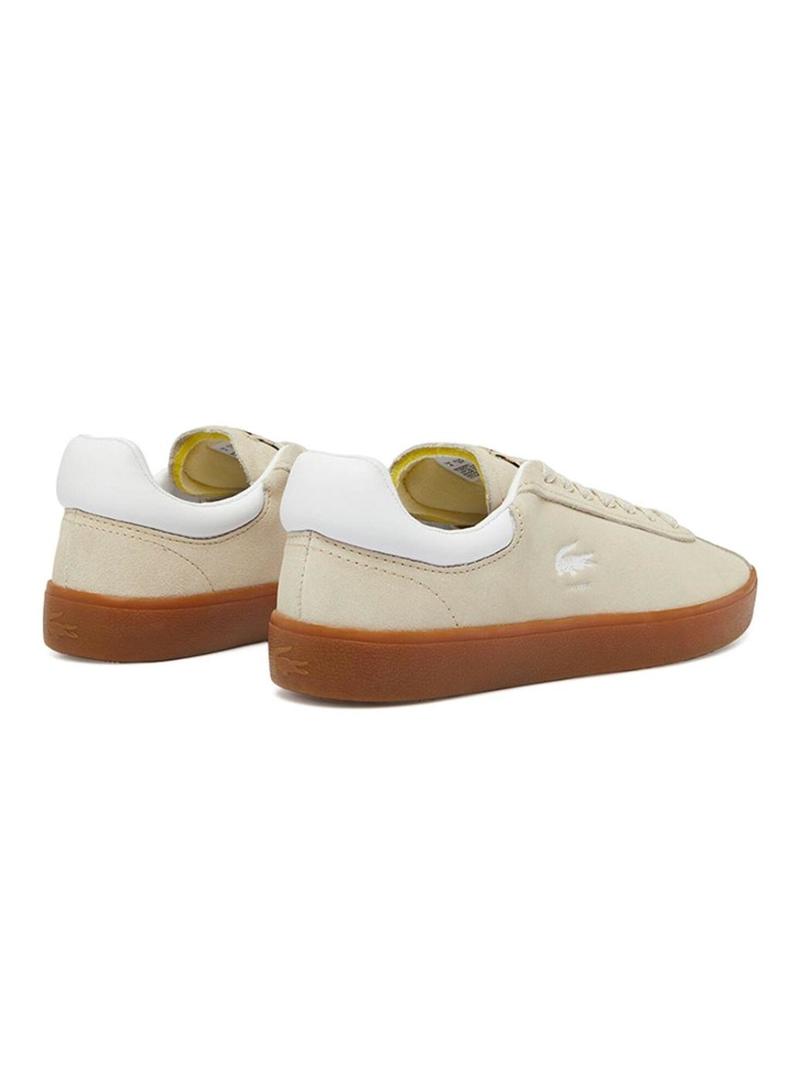 Sapatilhas Lacoste. Modelo Baseshot. Cor bege. Fecho com cadarços. Sola de borracha em cor natural. Logo gravado no lateral. Fecho com cadarços. Calcanhar acolchoado em cor branca.