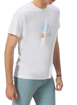 Camiseta El Pulpo O Mar Tudo Cura branca para homem.