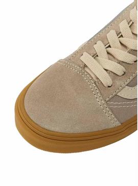Sapatilhas Vans. Modelo Old Skool. Cor bege. Sola de borracha em cor natural. Fecho com atacadores. Detalhes em branco sujo. Painéis de camurça.