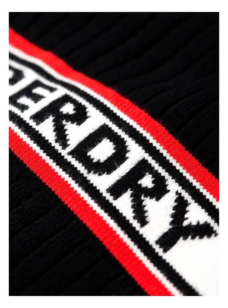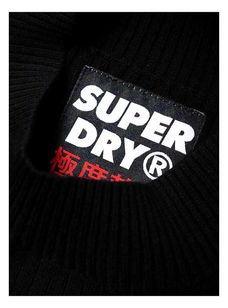 Vestido curto Superdry. Modelo Logo. Cor preta. Decote redondo alto. Manga comprida. Corte muito apertado. Tecido com nervuras de malha. con logotipo faixa decorativa que corre ao longo do peito e mangas.