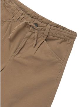 Bermuda Mayoral. Cor caramelo. Corte folgado. Cintura com elástico e cordões. Fecho com zíper e botão. 4 bolsos. Tecido leve.