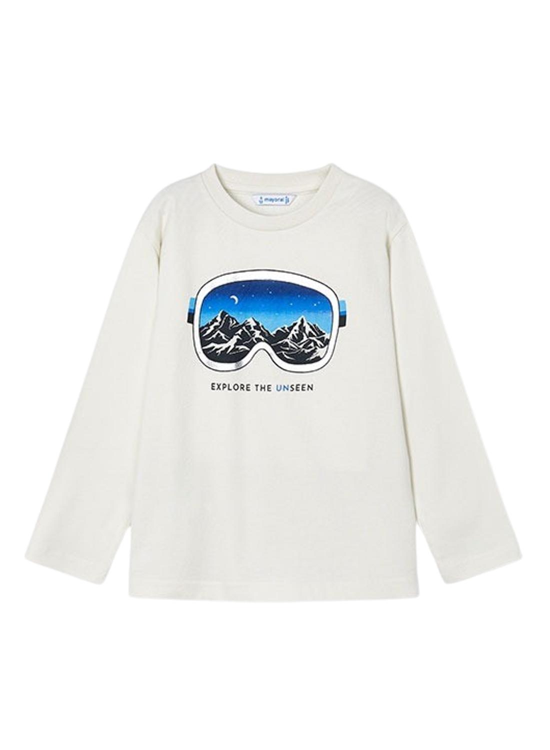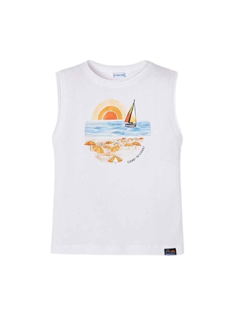 Conjunto de 2 camisetas Mayoral Windsurf branco azul para menino.