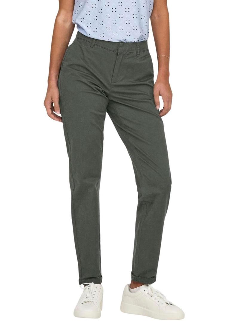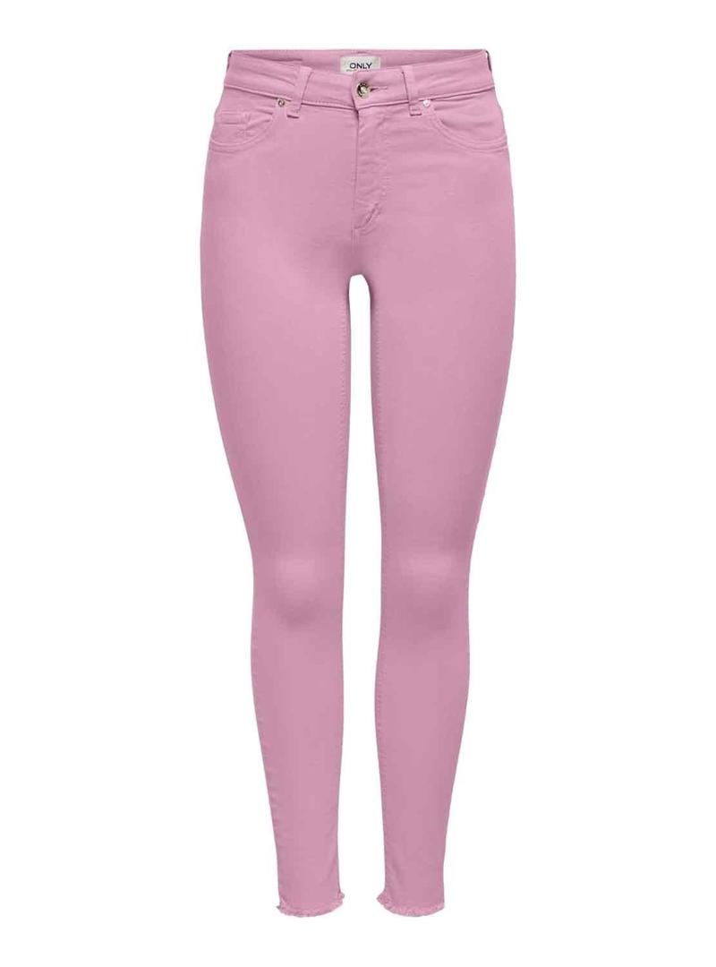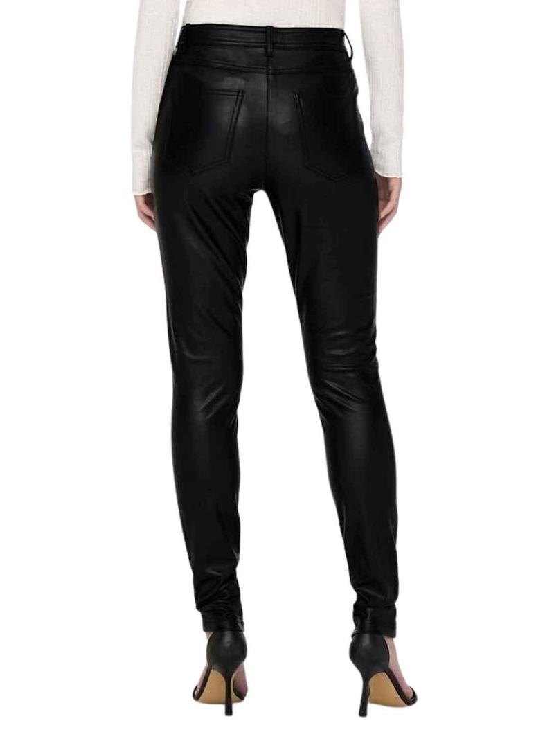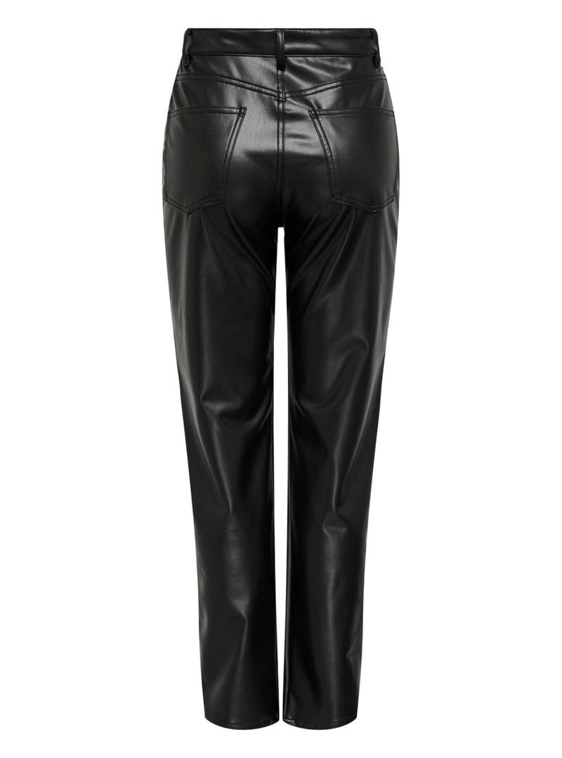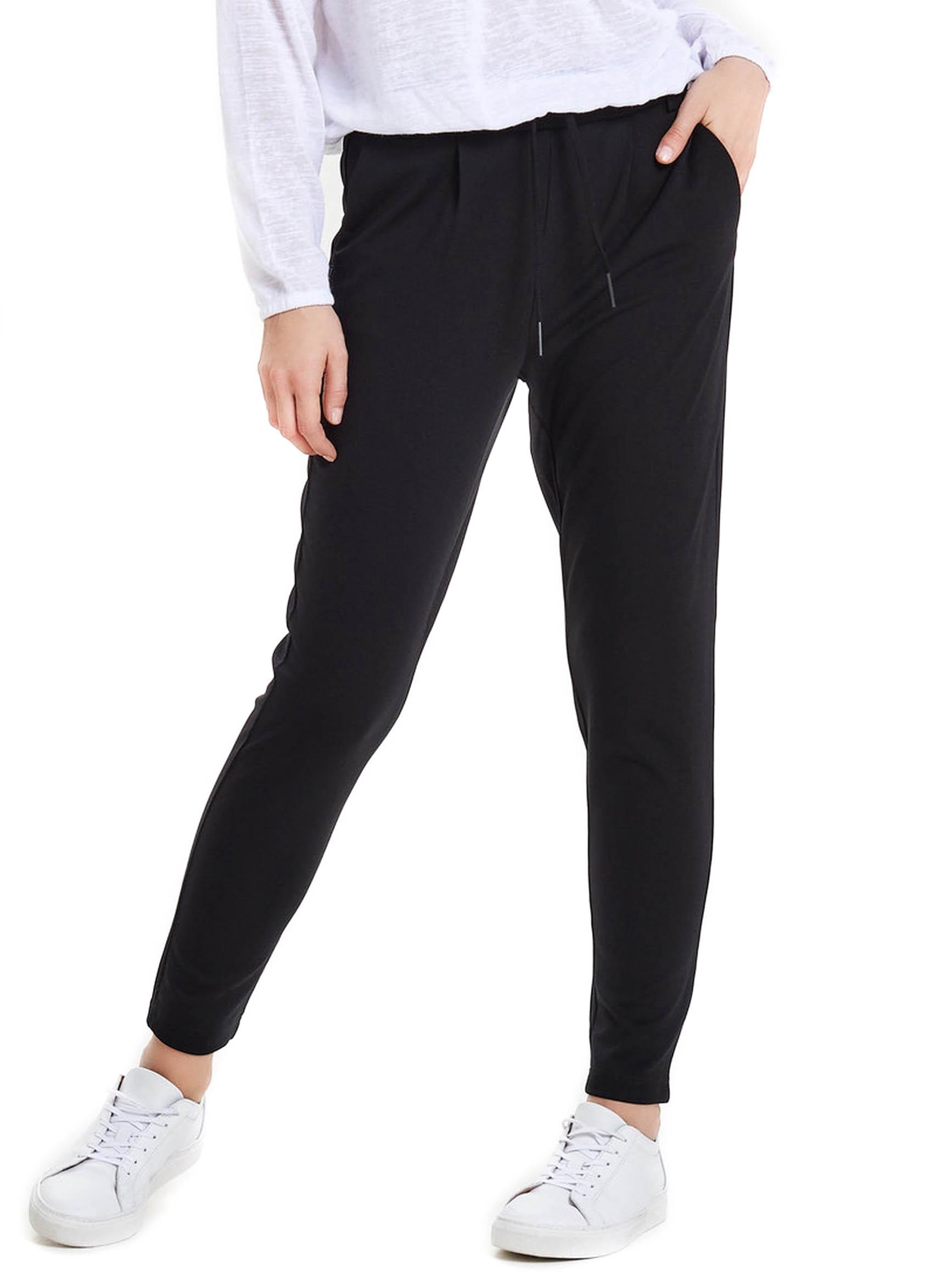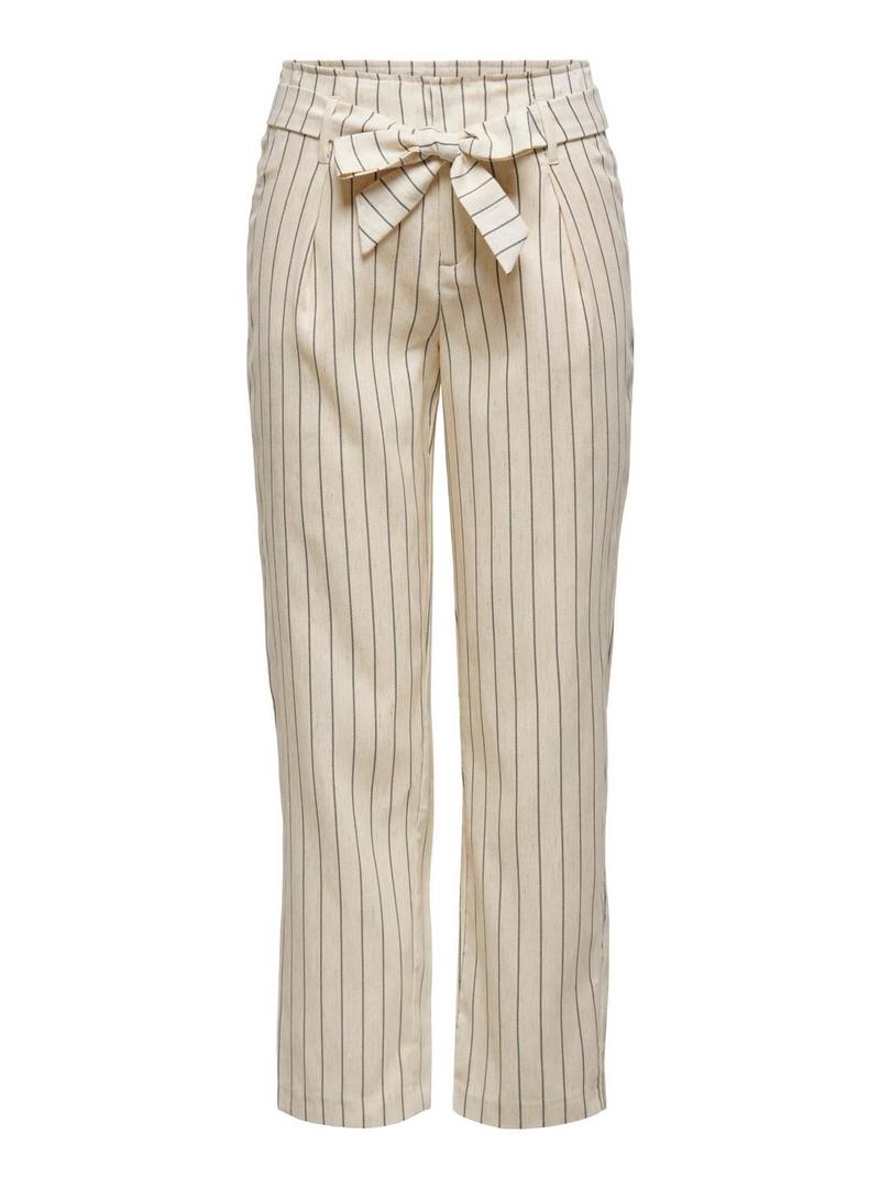 Calças Only. Cor azul. Tecido leve. Formato comprido. Cintura alta com elástico. Corte folgado. Perna larga. Bolsos laterais. O modelo veste o tamanho S.