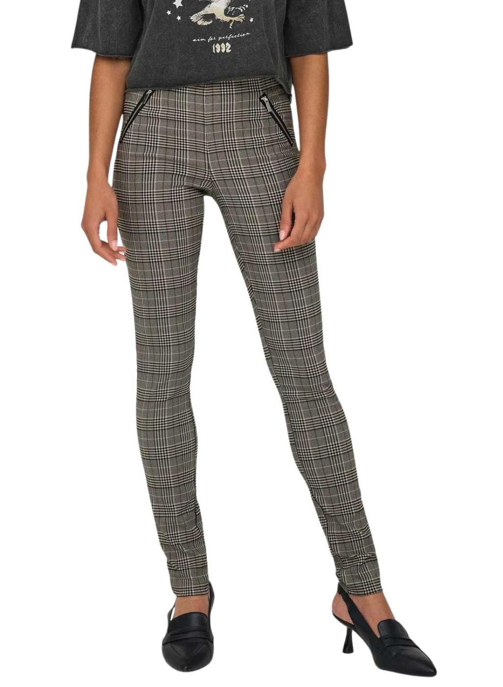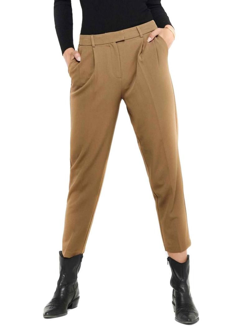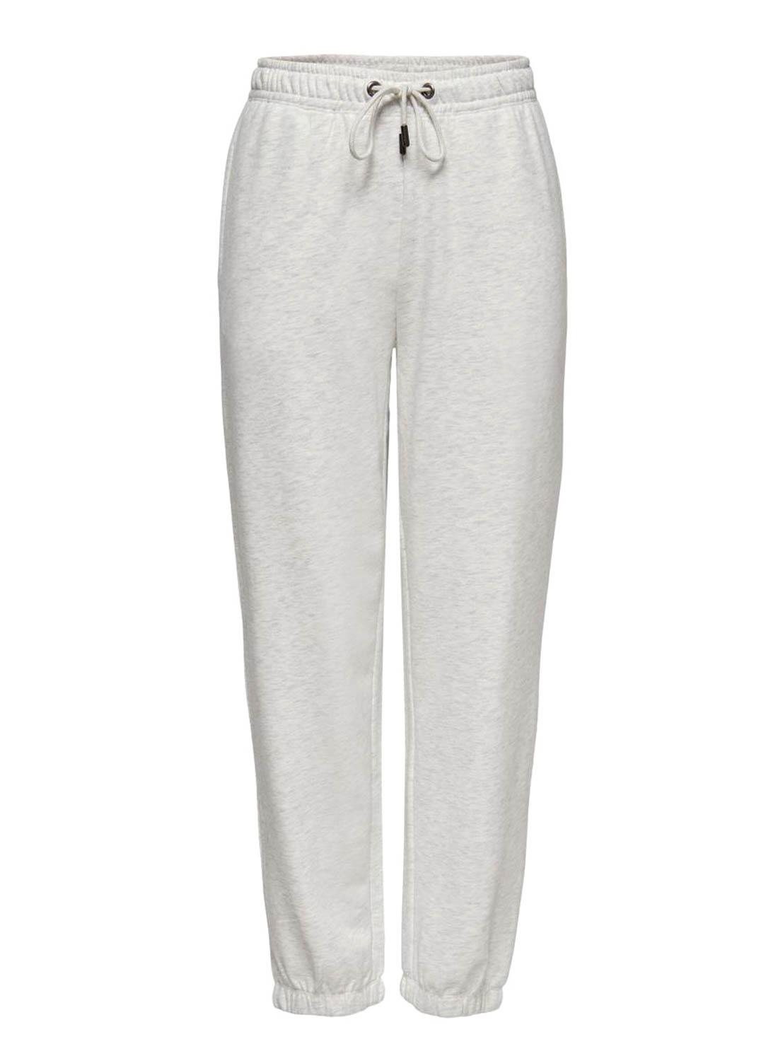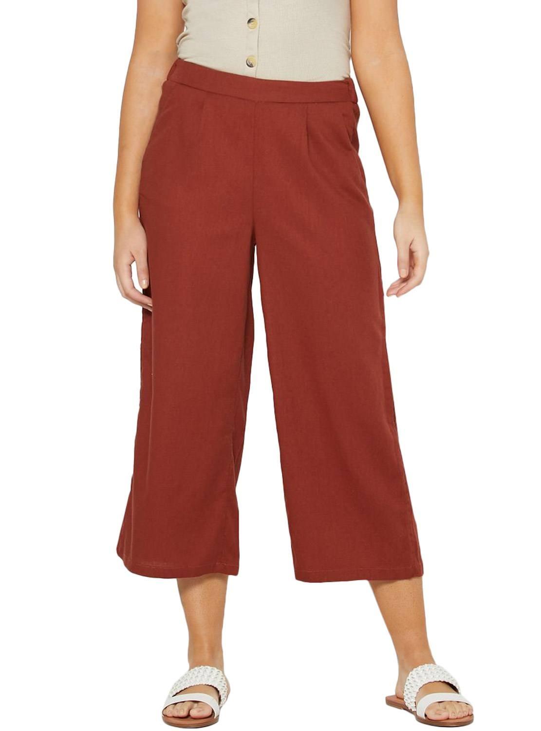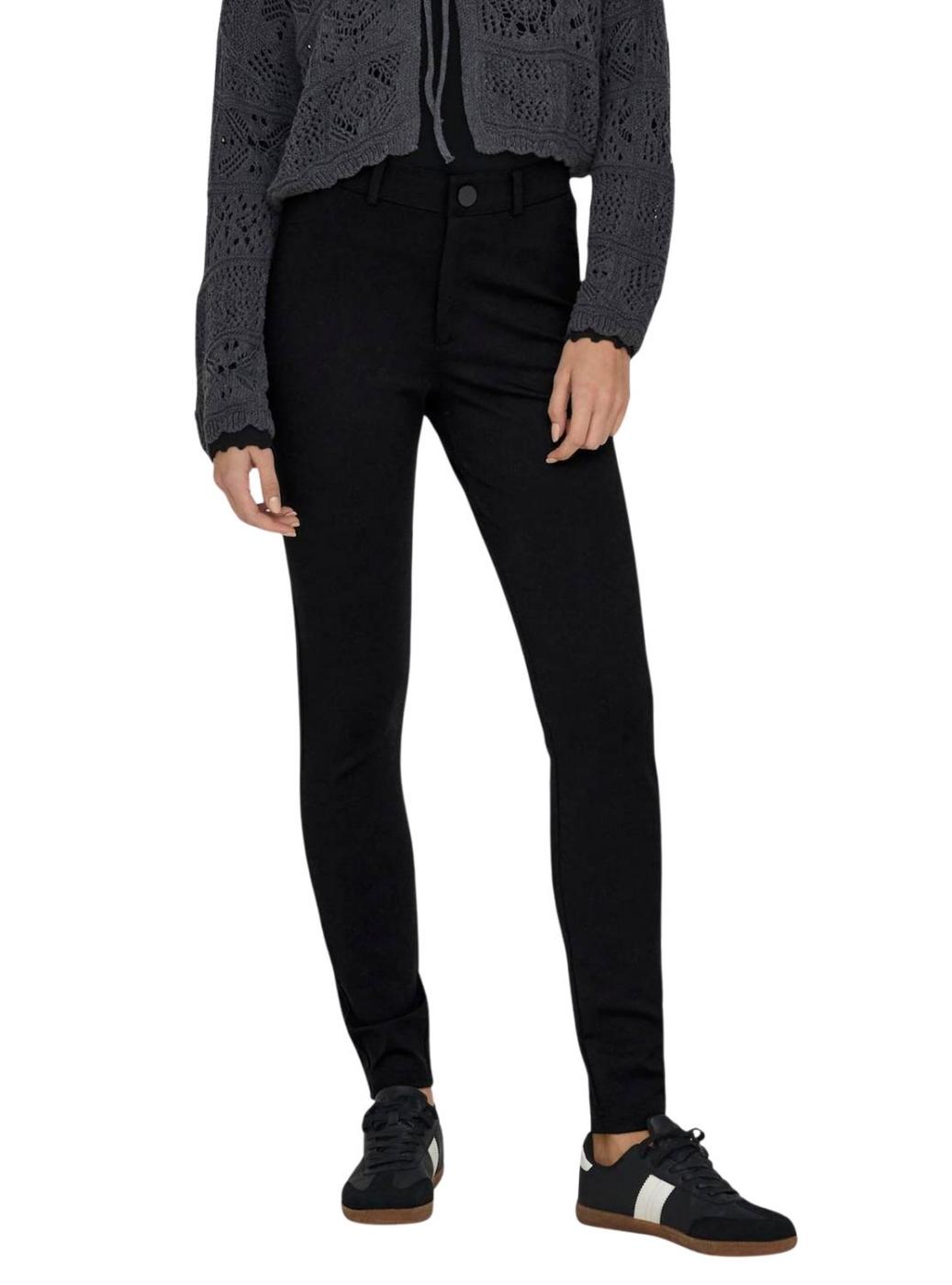 Calças Only. Cor azul. Tecido leve. Formato comprido. Cintura alta com elástico. Corte folgado. Perna larga. Bolsos laterais. O modelo veste o tamanho S.