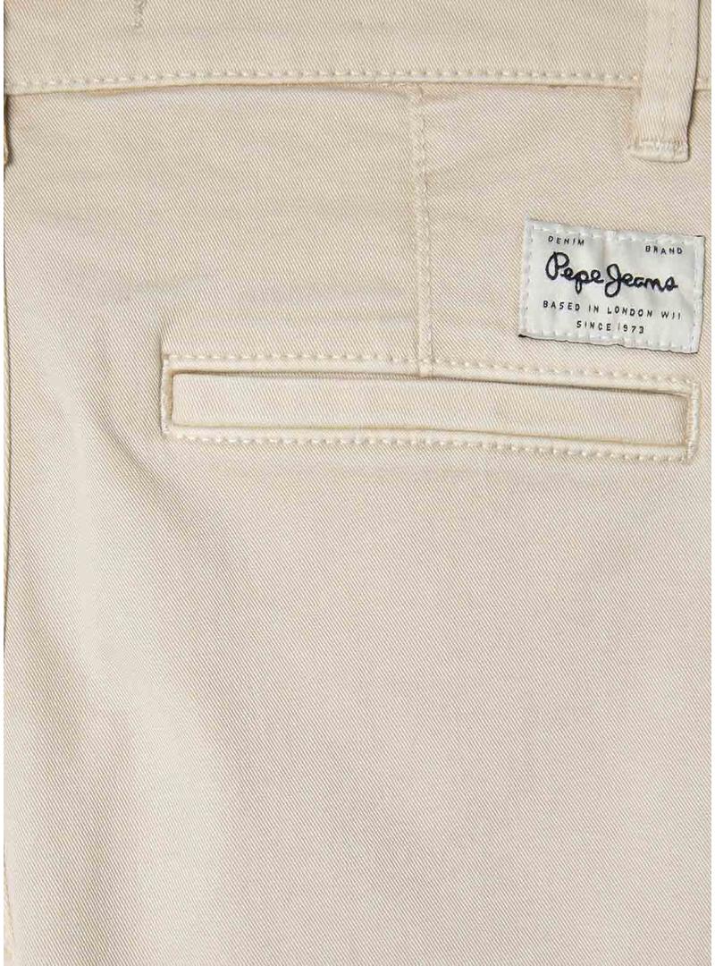 Calças Pepe Jeans. Modelo Júnior. Corte slim. Cor bege. Fecho com botão e zíper. Bolsos laterais. Bolsos traseiros com vivo. Etiqueta da marca na cintura.