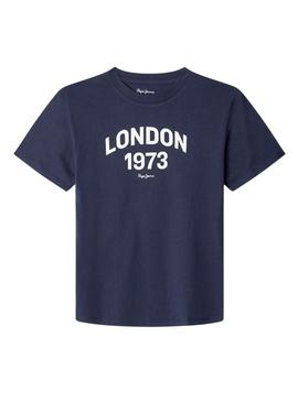 Camiseta Pepe Jeans Dylan azul marinho para criança.