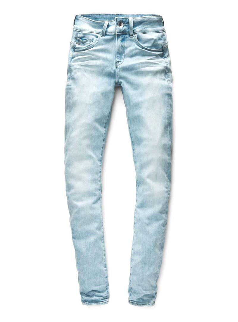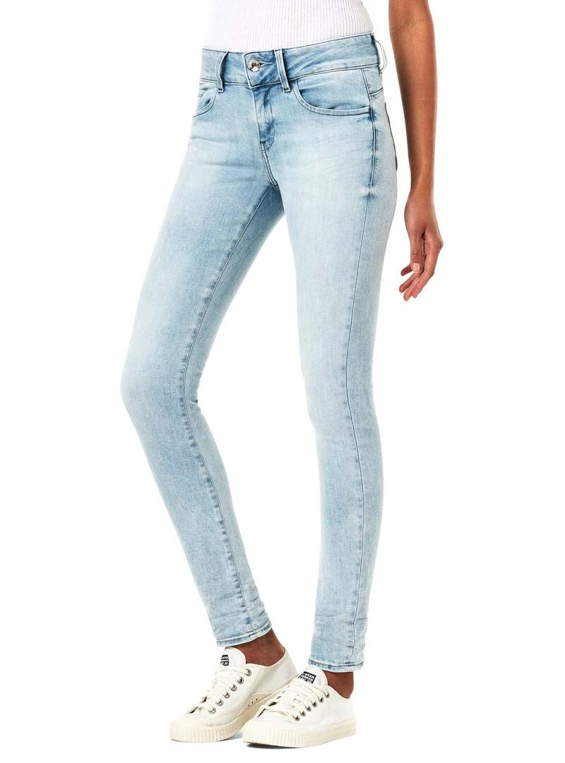 Jeans G-Star. modelo Midge DCody. Skinny. mid rise. cintura ajustada. fechamento com zíper. 5 bolso. Lave clara. efeito de lavagem. bolsos com zíper na parte de trás. Com grande elasticidade. O modelo está usando um tamanho 27.