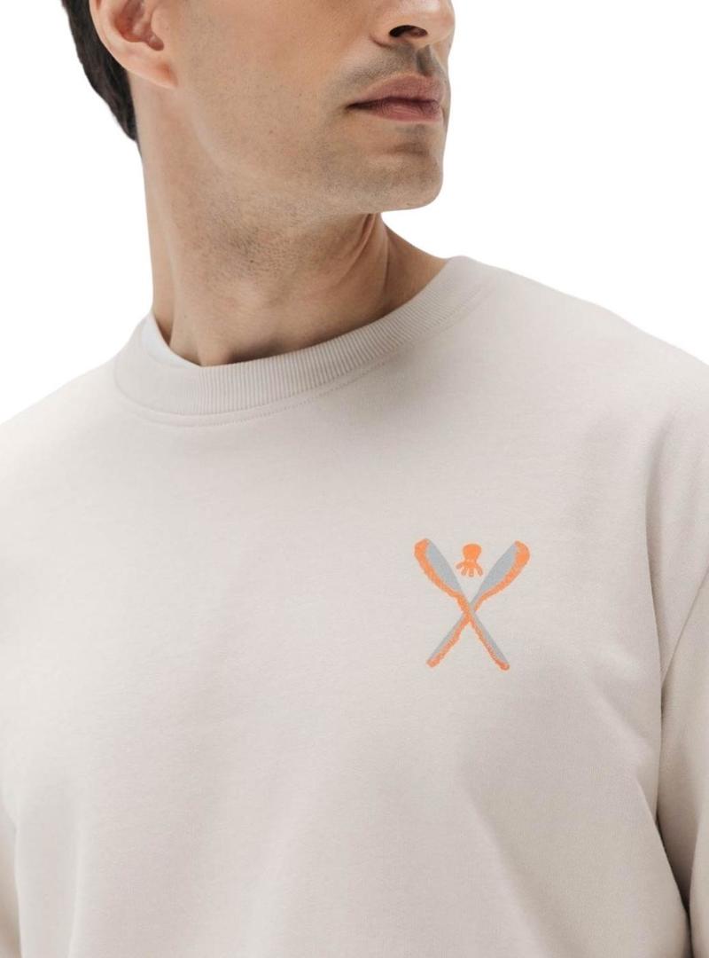 Moletom El Pulpo. Modelo Pás. Cor bege. Gola redonda. Extremidades caneladas. Logotipo estampado no peito e nas costas. Detalhes em laranja e azul. Ajuste regular.