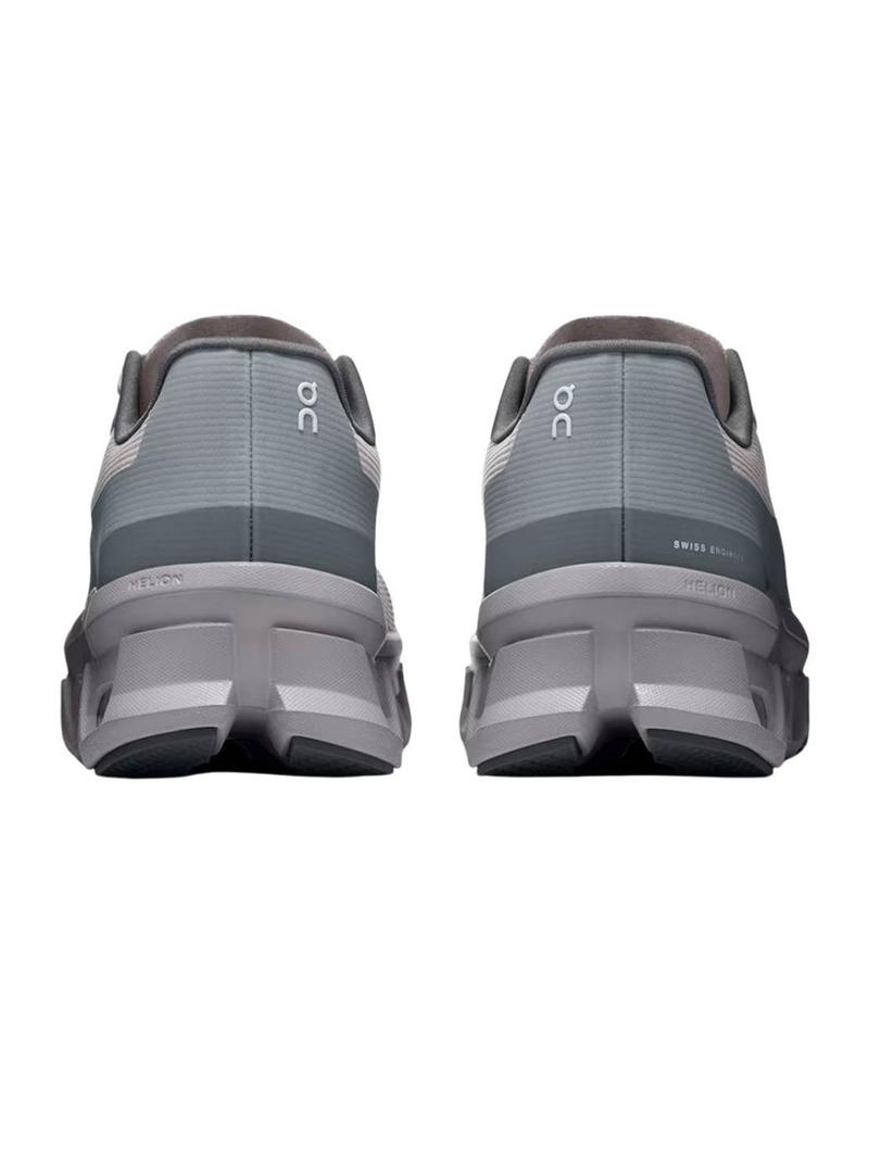 Tênis On Running. Modelo Cloudmonster Void. Cor cinza. Novo tecido técnico. Logotipo minimalista. Speedboard que proporciona maior estabilidade. Almofadas de borracha que garantem aderência e tração. Com superespuma Helion. Detalhes de camurça sintética.