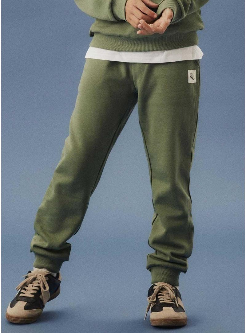 Calça de moletom Name It. Cor verde. Cintura de elástico ajustável com cordões. Bolsos laterais. Corte regular. Etiqueta decorativa na parte da frente. Barra com elástico.