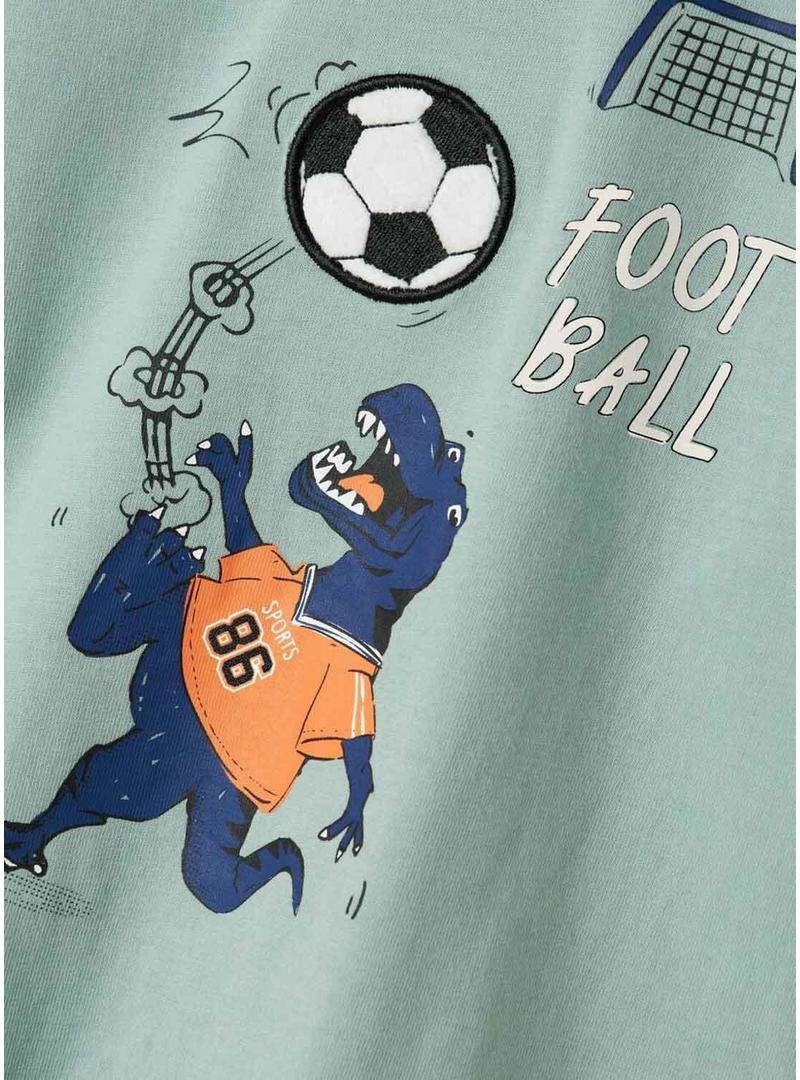 Camiseta Name It. Cor verde. Gola redonda. Manga comprida. Corte regular. Estampado na parte da frente.