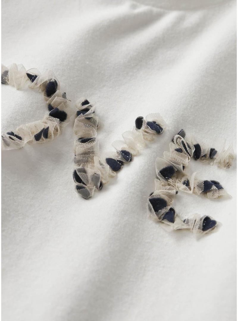 Camiseta Name It. Cor branca. Manga comprida. Estampa aveludada no peito. Corte regular.