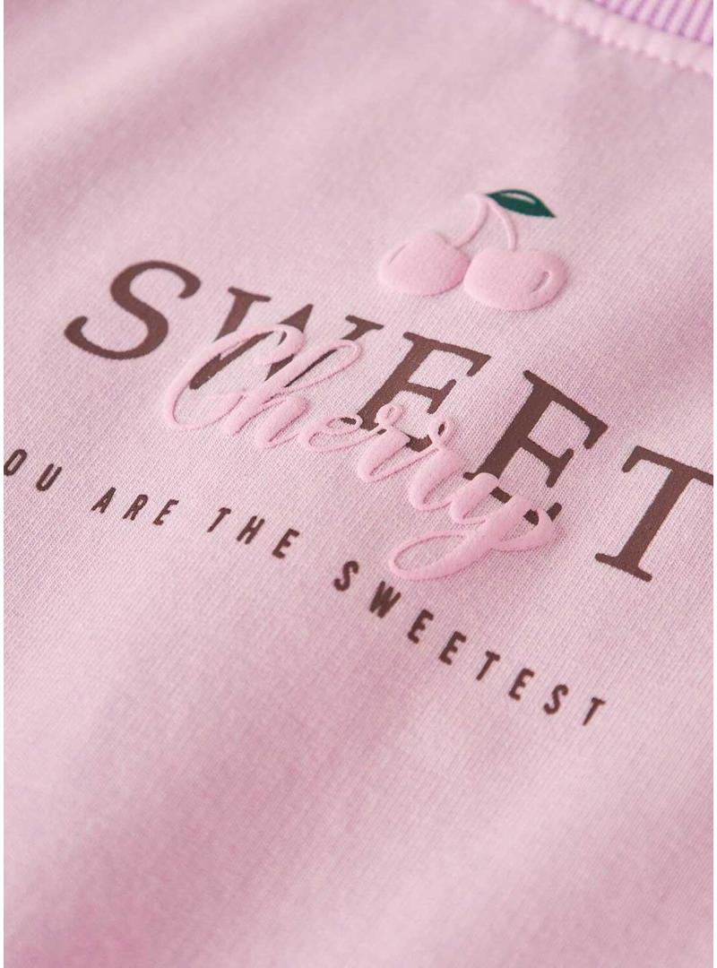 Moletom Name It. Cor rosa. Gola redonda. Manga comprida. Estampa no peito e nas costas. Ombros caídos. Formato regular. Acabamentos canelados.