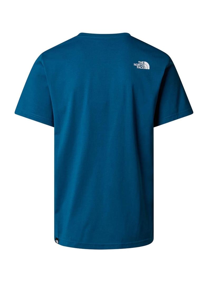 Camiseta The North Face. Modelo Easy. Cor azul. Gola redonda. Manga curta. Ajuste regular. Marca estampada nas costas em tamanho XL. Detalhes em branco. Logo nas costas.