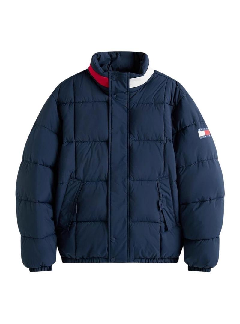 Jaqueta Tommy Jeans. Modelo DNA Collar. Cor azul marinho. Fecho com zíper oculto. Bolsos laterais. Gola alta com marca visível. Remendo na manga. Extremidades elásticas.