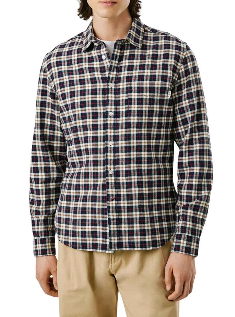 Camisa Pepe Jeans. Ajuste regular. Manga comprida. Colarinho clássico. Estampa de xadrez tartan. Bolso no peito esquerdo. Etiqueta com logotipo no bolso. Dobra na parte de trás.