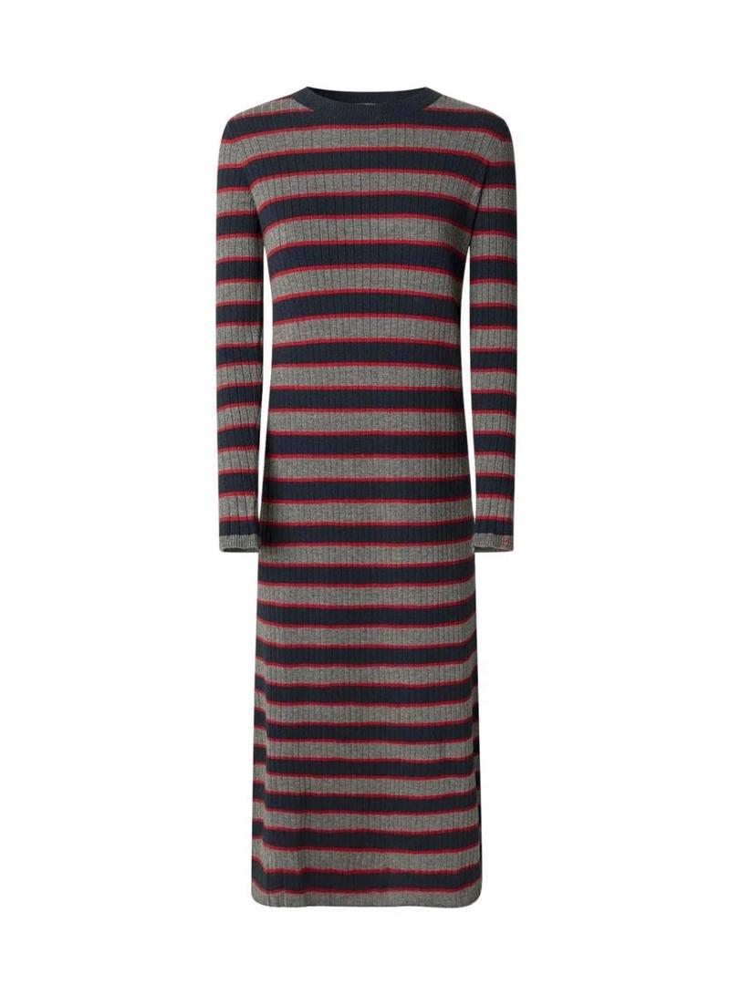 Vestido Pepe Jeans Clarisse de comprimento longo em canalé estampado de riscas para mulher.