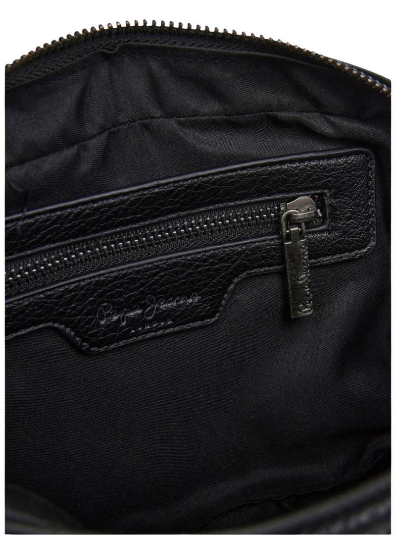 Bolsa Pepe Jeans. Cor preta. Formato de tiracolo. Feito de pele sintética. Fecho principal com zíper. Compartimento interior com zíper. Alça curta removível. Alça de ombro ajustável e removível. Logo da Pepe Jeans em relevo na parte da frente.