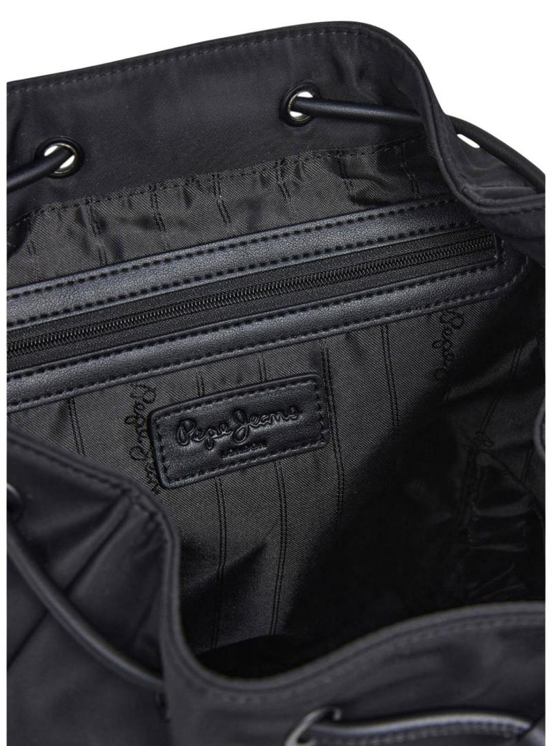 Mochila Pepe Jeans. Cor preta. Fecho principal com cordão e aba com fivela ajustável. Bolso frontal com zíper e logotipo em relevo. Bolsos laterais. Alças ajustáveis e acolchoadas. Alça superior de mão. Bolso interior com zíper.