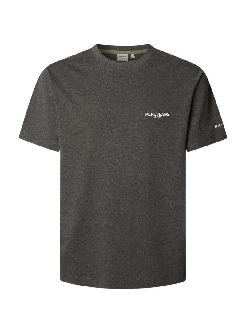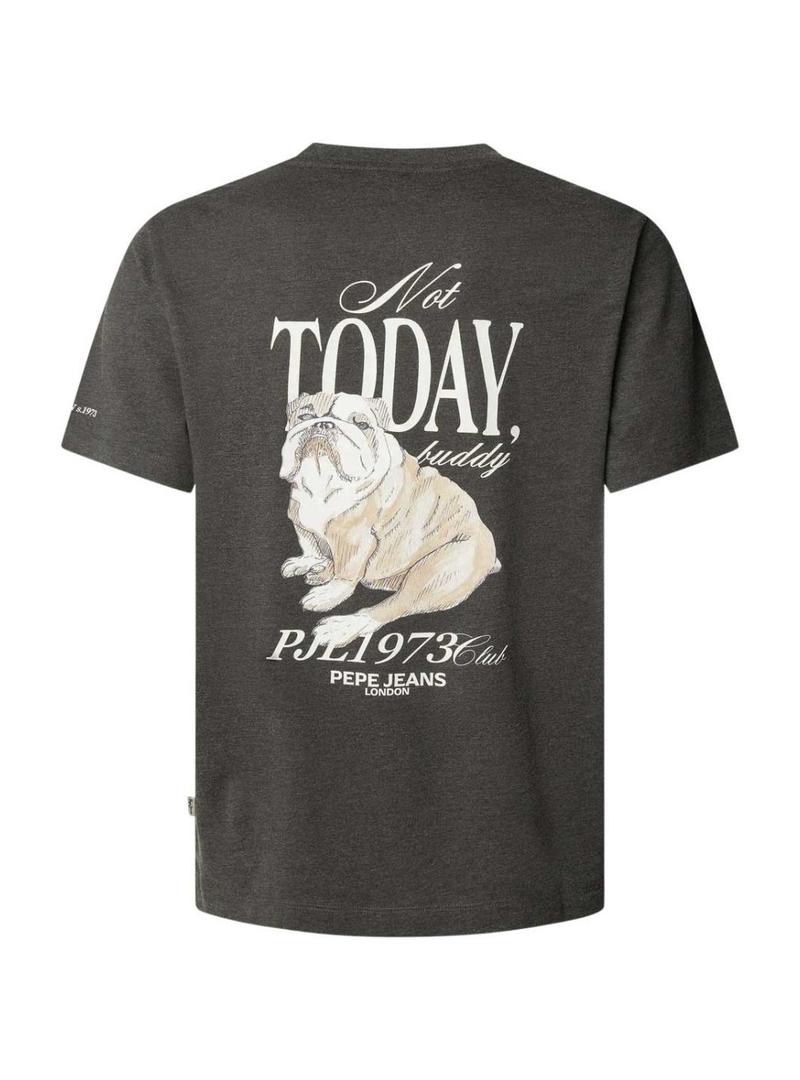 Camiseta Pepe Jeans. Cor cinza. Manga curta. Gola redonda. Corte relaxado. Logo da Pepe Jeans no peito. Estampa gráfica nas costas. Logo estampado na manga esquerda. O modelo veste o tamanho M.