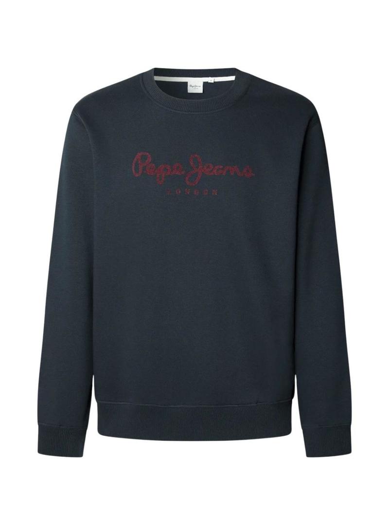 Moletom Pepe Jeans. Cor azul marinho. Manga comprida. Gola redonda. Logo Pepe Jeans no peito. Formato regular. Acabamentos canelados. Fita em contraste de cores no interior da gola. O modelo veste o tamanho M.