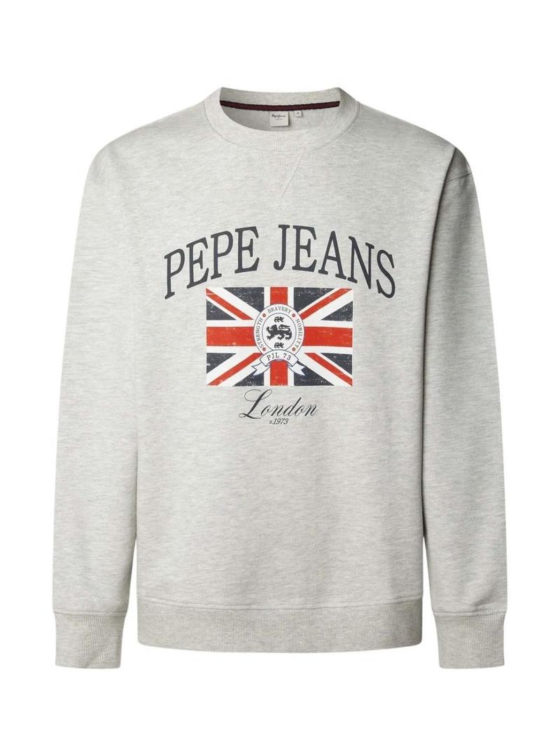 Moletom Pepe Jeans. Cor cinza. Manga comprida. Gola redonda. Estampado gráfico no peito. Acabamentos canelados. Etiqueta costurada com logotipo na costura lateral. Formato regular.